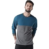 Kalt Men's Dual Colour Full Sleeves Round Neck Cotton Blend T-Shirt(Teal::Dark Grey Melange)