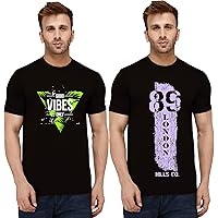 London Hills Men's Half Sleeve 100% Pure Cotton Casual Round Neck Printed Regular Fit Non-Shrinkable Multi-Colored T-Shirts (Pack of 2)