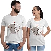 Prince Store Mochi Mochi Cat Peach Goma Customised Couples T-Shirt for Men and Women