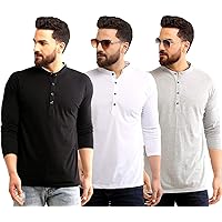 SCATCHITE Mandarin Collar Full Sleeve Casual T-Shirts for Men's & Boy's, Pack of 3