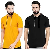 Leotude Regular Fit Half Sleeve T Shirt with Hoodie for Men, Combo Pack of 2