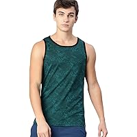 Urbano Fashion Men's Dark Green Printed Sleeveless Slim Fit Cotton T-Shirt