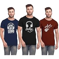Wild Thunder Round Neck Half Sleeve Men Cotton T Shirts Live Life Loud, Music 1002 Printed Black, Black and Black 3 Combo T Shirt for Men
