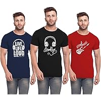 Wild Thunder Round Neck Half Sleeve Men Cotton T Shirts Live Life Loud, Music 1002 Printed Black, Black and Black 3 Combo T Shirt for Men