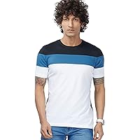Black Snow Men's 100% Cotton Striped Colour Block Designer Stylish Round Neck T-Shirt