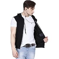 fanideaz Mens Cotton Black Zipper Jacket Sleeveless Tshirt for Men