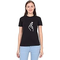 Lasmo Slim Fit Cotton Round Tshirts for Women-Black