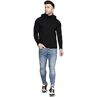 FINEROGUE Men's Regular Fit Solid Hooded Full Sleeves with in-Build Mask T-Shirt